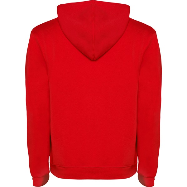 Hoodie rouge à capuche confortable et moderne.